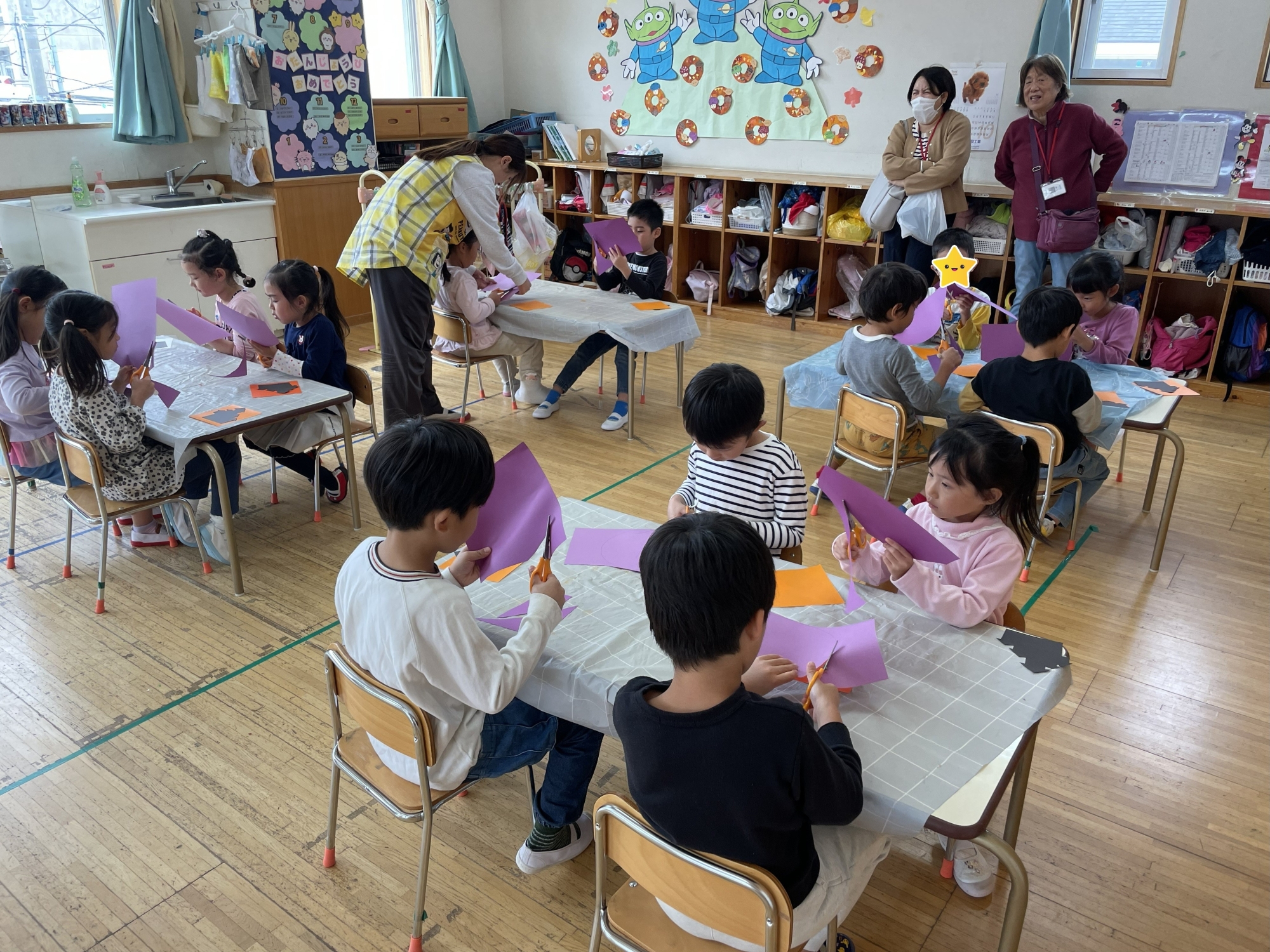 5歳児クラスでもハロウィンを盛り上げようと、制作に夢中になっています。