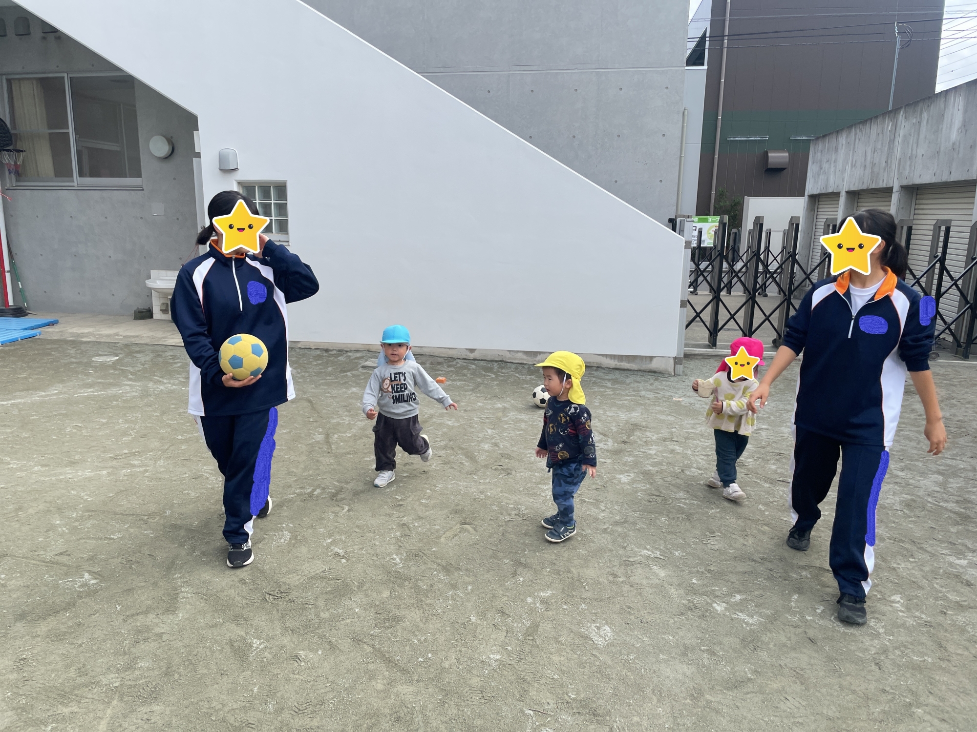 ボールをキャッチしたり、蹴ったり、たくさんやり取りを楽しみました。