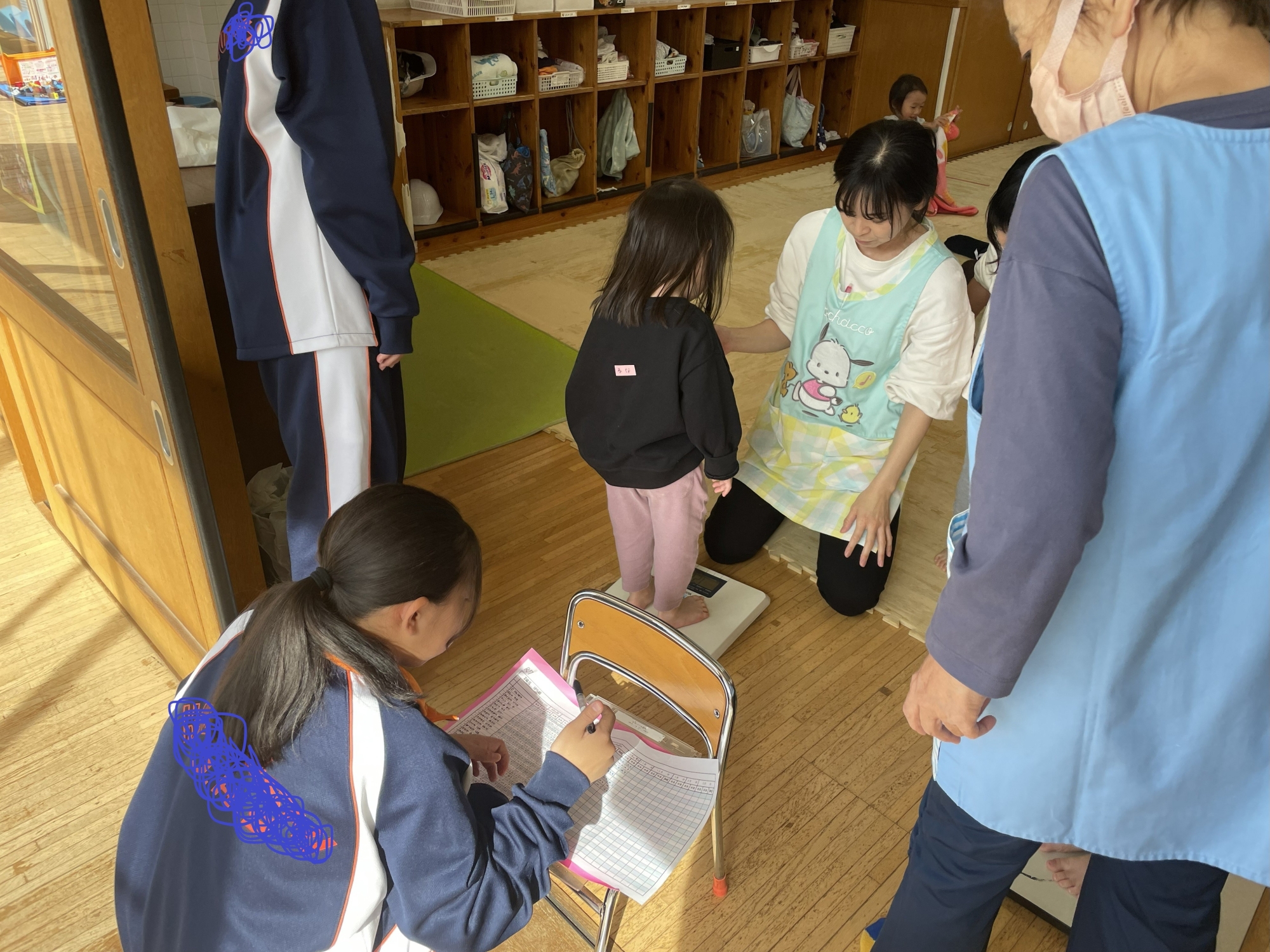 子ども達の身体測定のお手伝いもしてもらいました