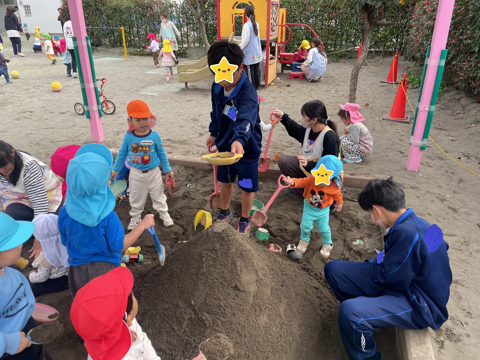 自分たちより背の高い、大きなお山を作ってもらい、子ども達も大興奮でした‼
