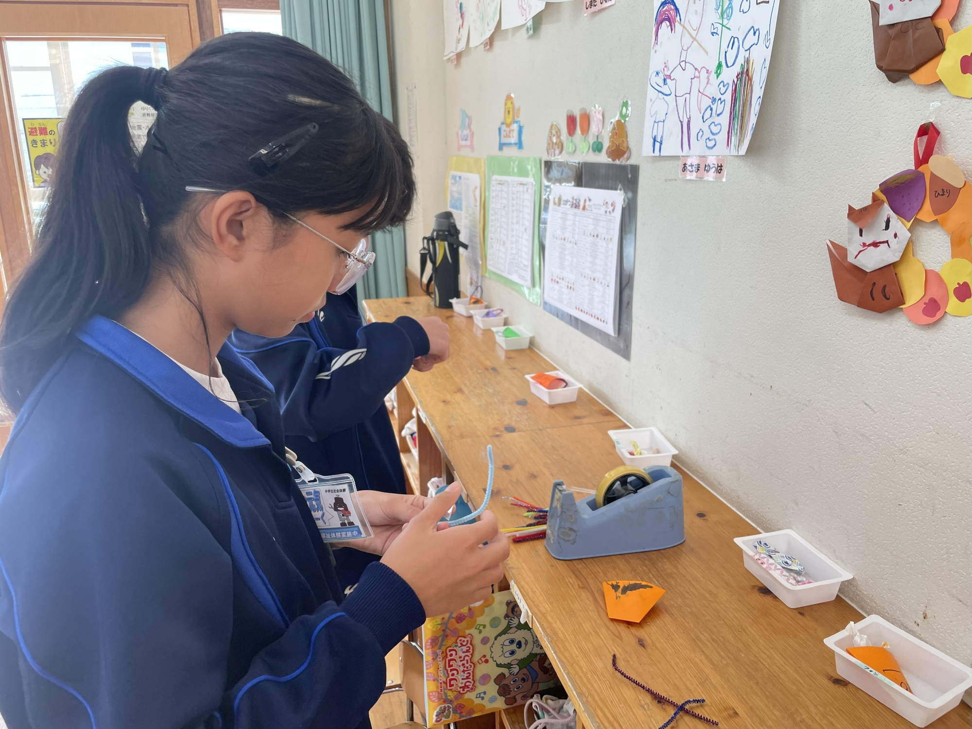 制作の準備のお手伝いも行ってくれました。保育士のいろんな仕事の経験をしてもらいました。