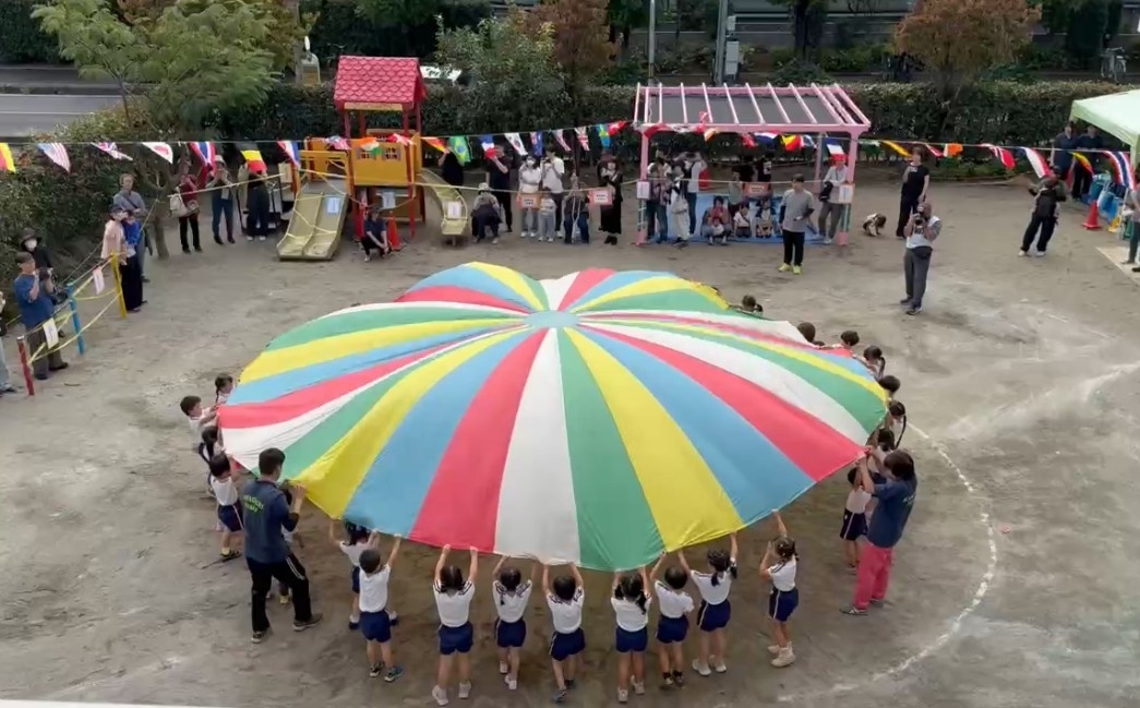 大きなパラシュートを見て、目をキラキラ輝かせワクワクしていた子ども達。