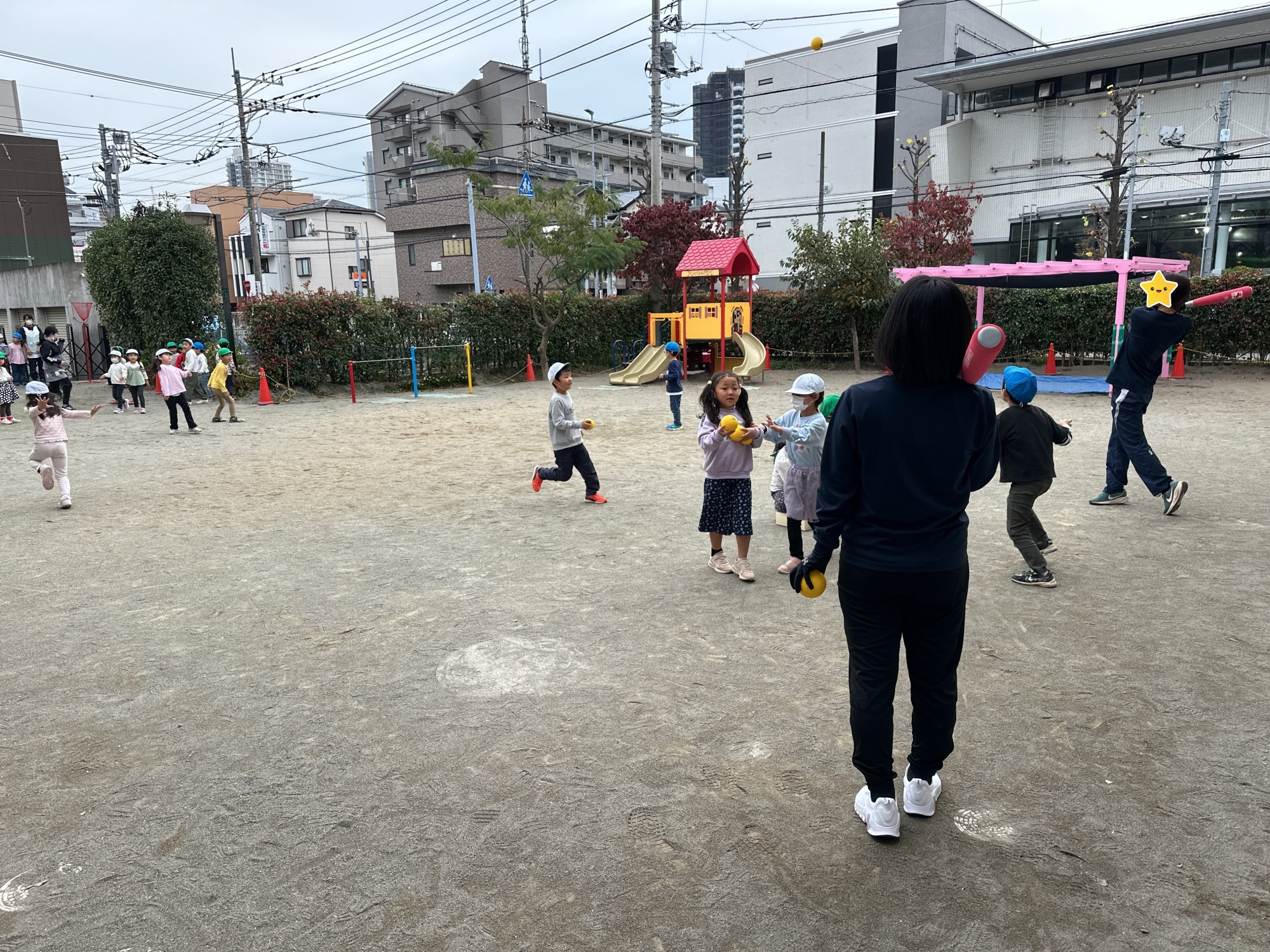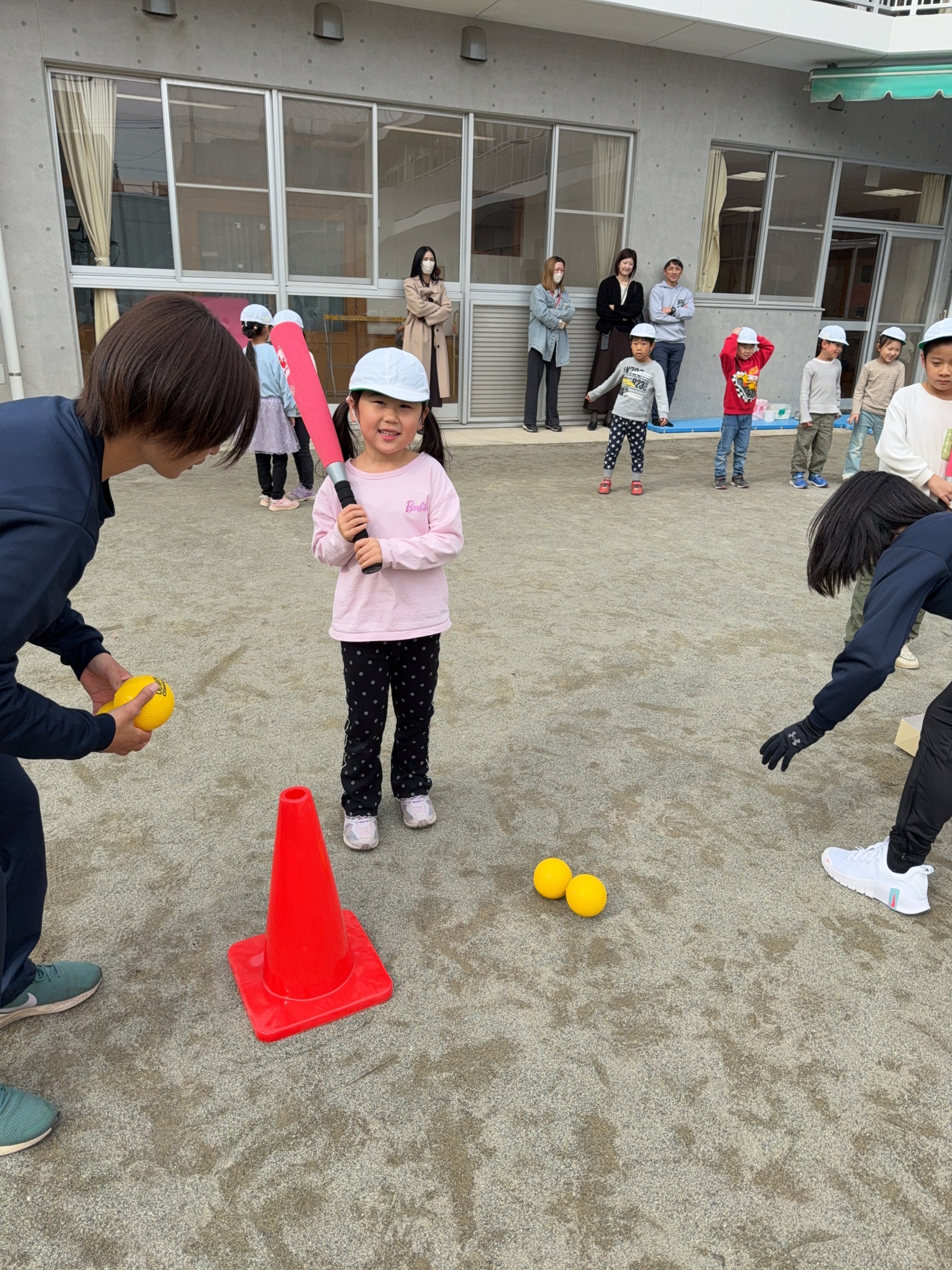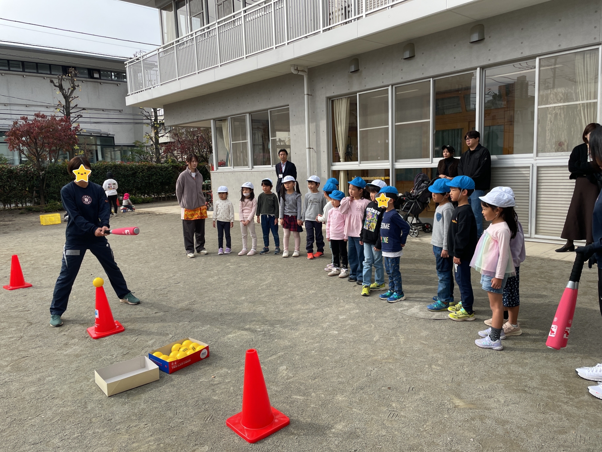 まだ野球を知らない子ども達に、ボール遊びを通じて身体を動かす楽しさや野球の面白さを知ってもらう教室に5歳児さんが参加しました。お時間がある保護者の方にも見学に来ていただき、子ども達もやる気満々でした✨