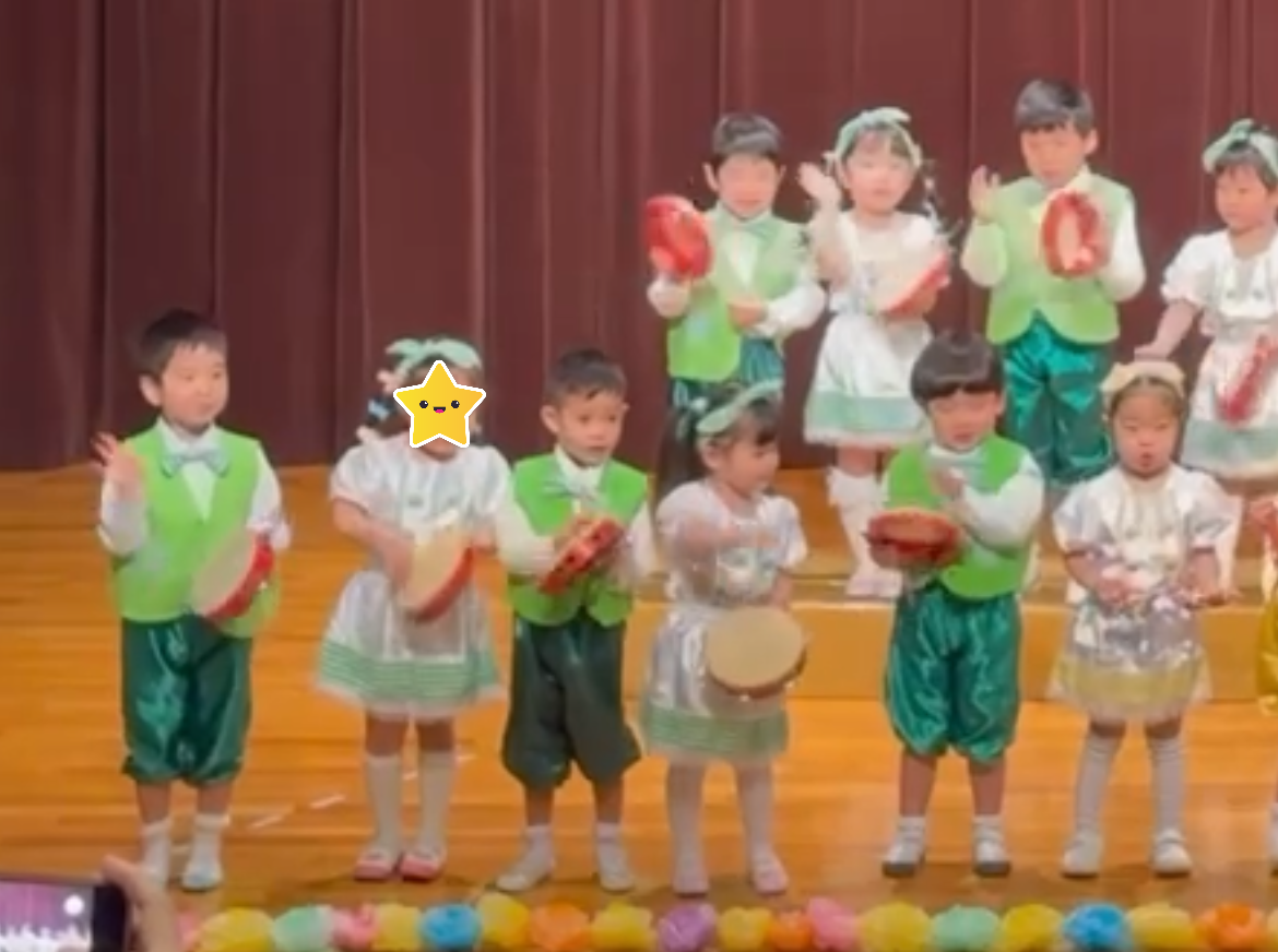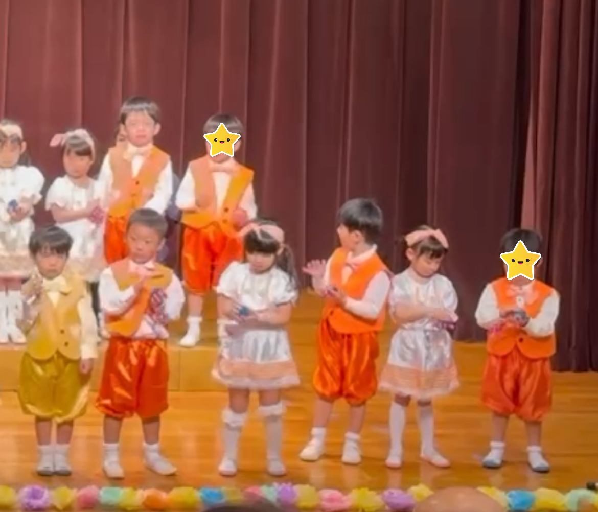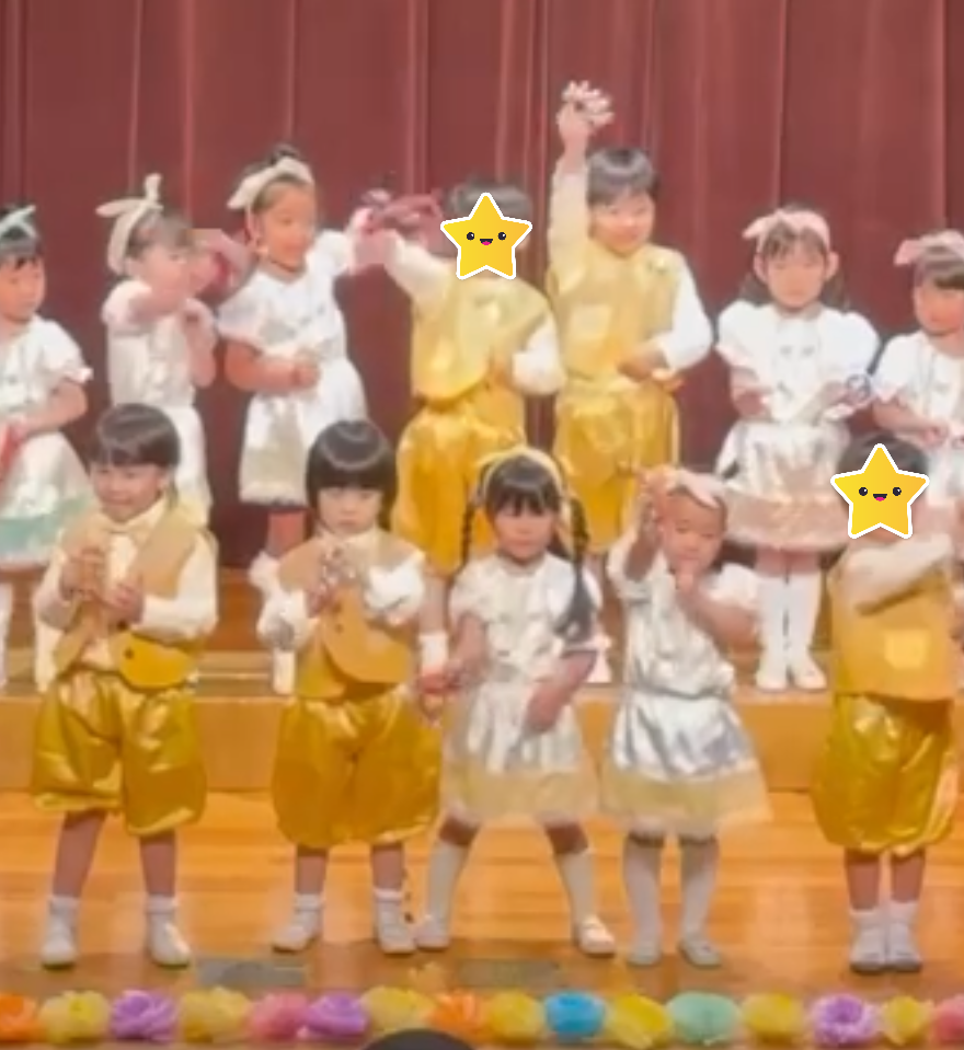 立つ・座るのタイミング、隊形移動が難しくてうまくいかないこともありましたが、頑張って練習をして少しずつ出来るようになりました。本番では完璧にこなして笑顔あふれる可愛い姿を披露できました💛
